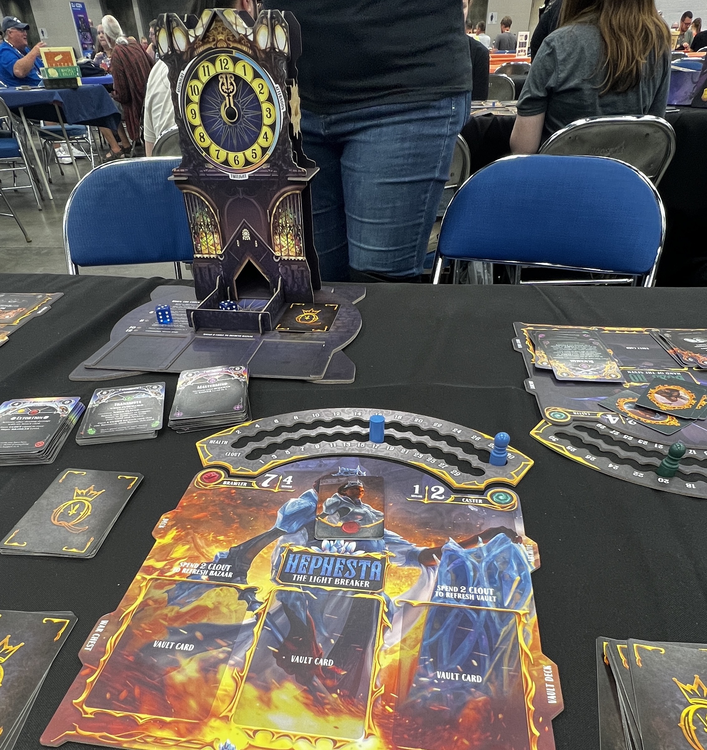 The latest game from Darrington Press, the publishing arm of Critical Role, Queen By Midnight is a deck-building game designed by Kyle Shire. The Queen is dead, and as one of the 6 possible princesses, your job is to become the next queen by midnight either by gaining the most health and clout points or by eliminating the other princesses. Each princess has a unique set of possible powers that a player can use, and certain hours of the night have effects that can change the outcome of the game. What’s nice about this game is if you are eliminated, you can still participate in the game by helping the princess you have pledged your allegiance to in the event that your character died.