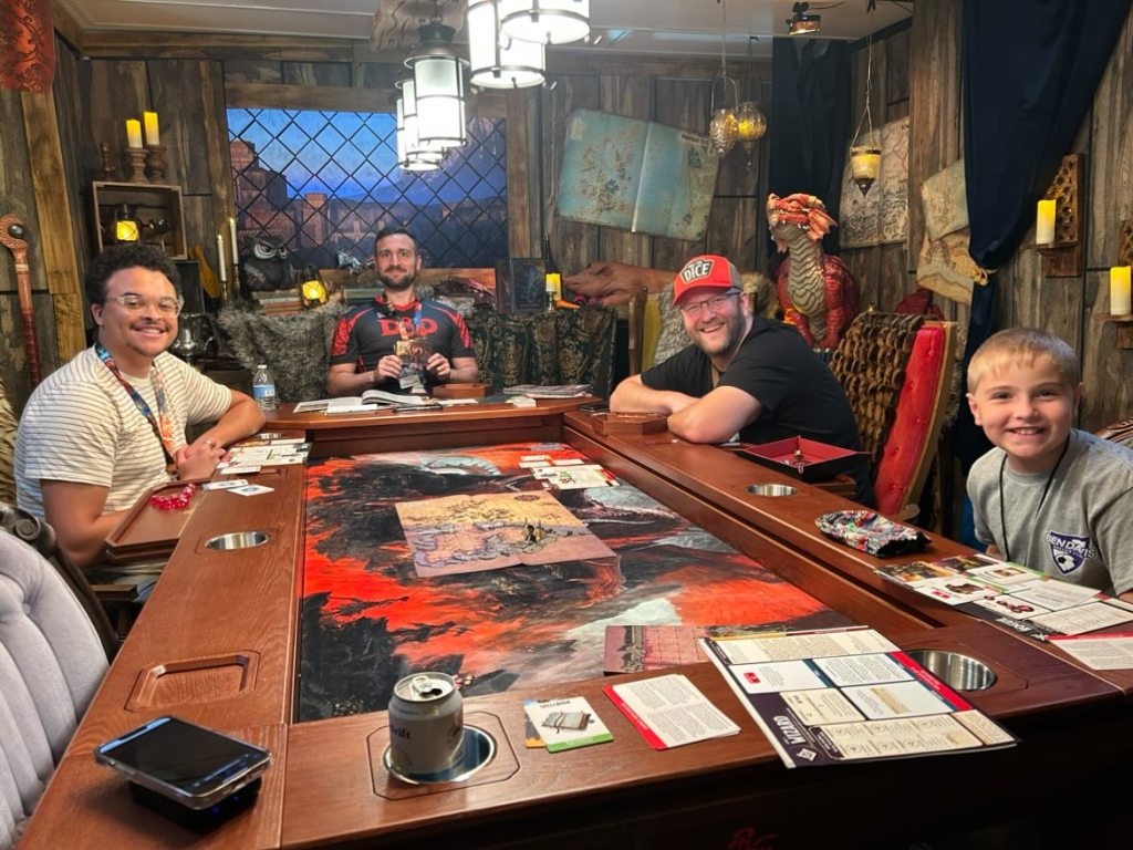 We were also lucky enough to get an offer for Justice Arman, the Managing Game Designer from the D&D Team, to run a private game for my kid and I and another member of the press in a private room, where we played the new starter set, Heroes of the Borderland, which will come out in September. We got to put together our character from the options that come in the box set, and we played an adventure from it as well. Although this starter set is vastly different than what D&D released when 5th Edition (2014) came out, I thought this is a great product that’s coming out. I often hear that D&D can be intimidating to try to get into when you don’t know someone who knows how to play (which I can relate, but I also had Baldur’s Gate 3, thankfully), so this starter set is really designed to be an accessible and beginner-friendly experience. Using board game-like materials such as character cards, tokens to represent certain feature uses, etc., Heroes of the Borderland is great to get someone the foundations of D&D as a player and Dungeon Master. Overall, we all enjoyed playing it, getting into the mechanics and roleplaying of the game, and Justice did a wonderful job being a Dungeon Master for us with his storytelling. (They particularly loved how much my kid liked to lean into the chaos and wasn’t afraid to go up against monsters that were clearly meant to destroy us!)