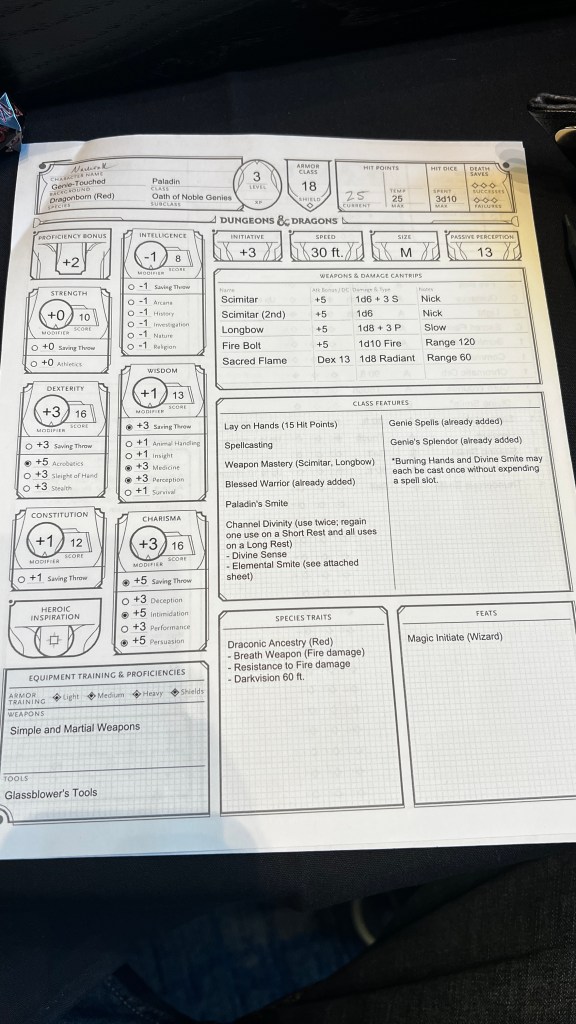 On Friday of the convention, I got to participate in a Preview of the new subclasses from the new Forgotten Realms books that will be released by D&D later this year, Heroes of Faerun. I played the Paladin’s Oath of the Noble Genies, and although I am not particularly fond of Paladins, this sublcass was actually a lot of fun to play. We all played at level 3 so we can try our subclass features and I had a lot of cool ideas from how I could use the features from that level of Oath of the Noble Genies while we were in combat. I’ve been a sucker for the Forgotten Realms (and Karlach on the cover of the book is icing on the cake), and playing in this adventure from Baldman Games sealed the deal for me.