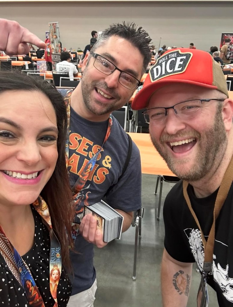 In the past few years since I’ve been involved in the TTRPG community, I’ve connected with so many wonderful people through social media. I’ve formed a lot of friendships and connections through our love for roleplaying games, D&D, Baldur’s Gate 3, etc., and I was absolutely ecstatic to have met them in person at GenCon. Growing up, I never would have thought that I would be making friends online through gaming, but this has been such a wonderful experience creating relationships with people and finally connecting with them in person thanks to GenCon.